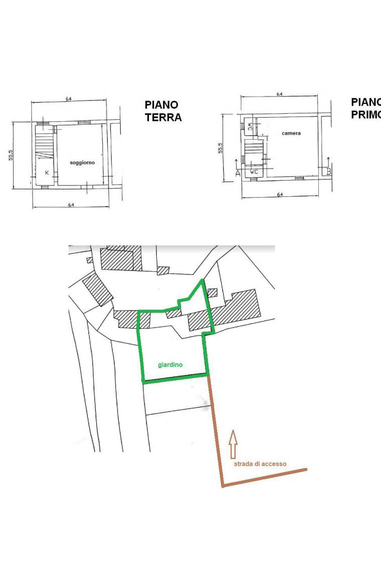 L'abitazione è costruita con struttura in muratura portante ed è su due livelli con scala interna, al piano terra un soggiorno pranzo con camino, porta finestra verso il giardino ed angolo cottura, al piano primo c'è una ampia camera matrimoniale, due piccoli bagni di cui uno interno alla camera. Completano la proprietà due spaziose cantine al piano terra, un forno ed un ampio e comodo giardino recintato comprende anche un piccolo orto, un parcheggio, essendo spazioso e panoramico potrebbe ospitare volendo anche una piccola piscina o un porticato in legno, il tutto è accessibile con un grande cancello scorrevole in ferro.